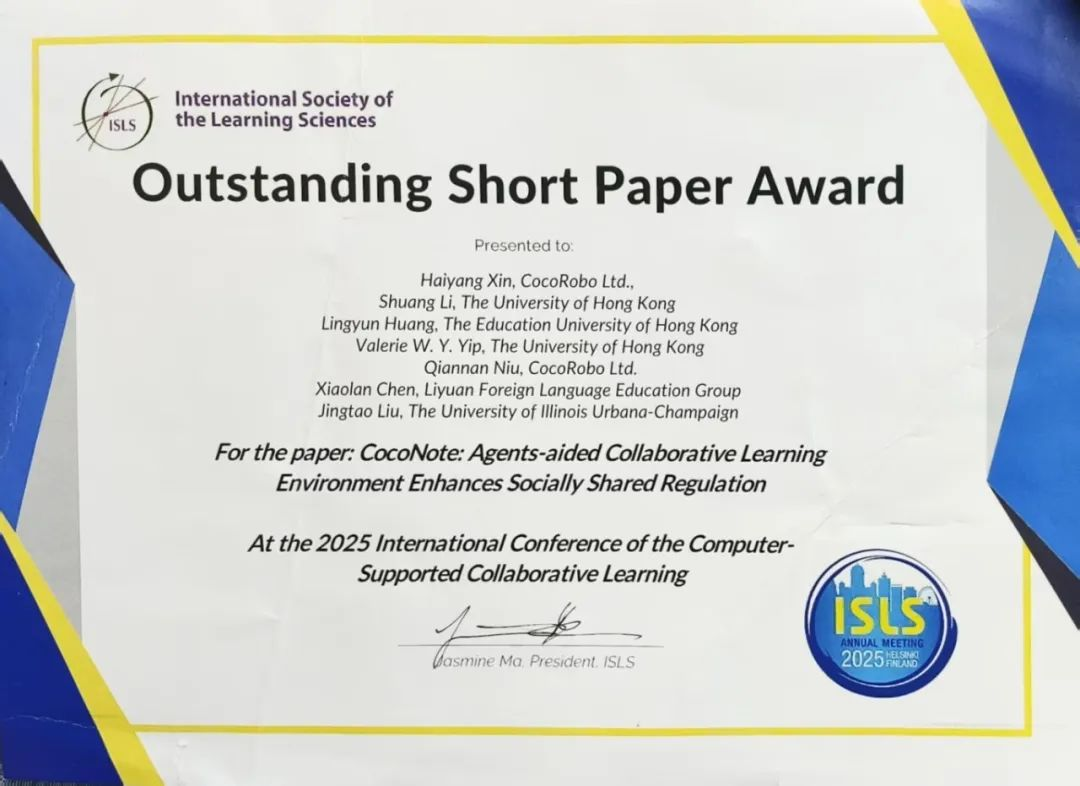 CocoRobo won 5 CKCL Outstanding Short Paper Awards and presented three research achievements at ISLS Annual Meeting 2025.